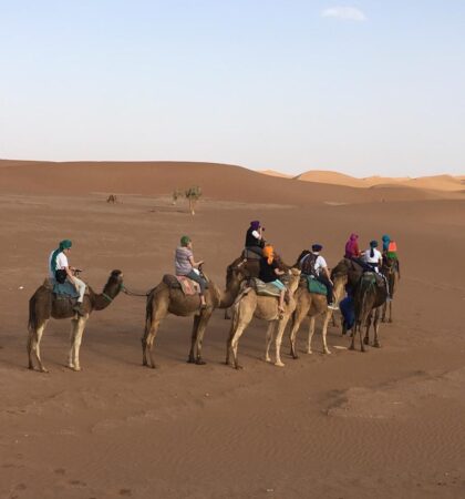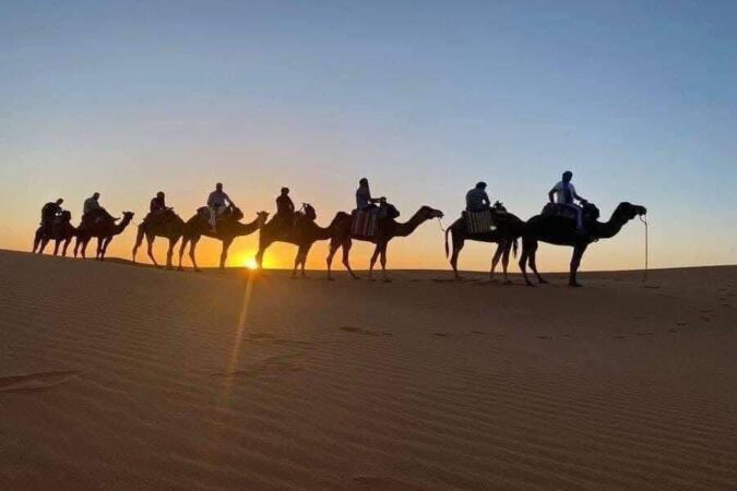 - Camel trekking & Sahara sunset – Ride a camel across the golden dunes of Erg Chegaga and witness an unforgettable sunset over the Sahara Desert.
